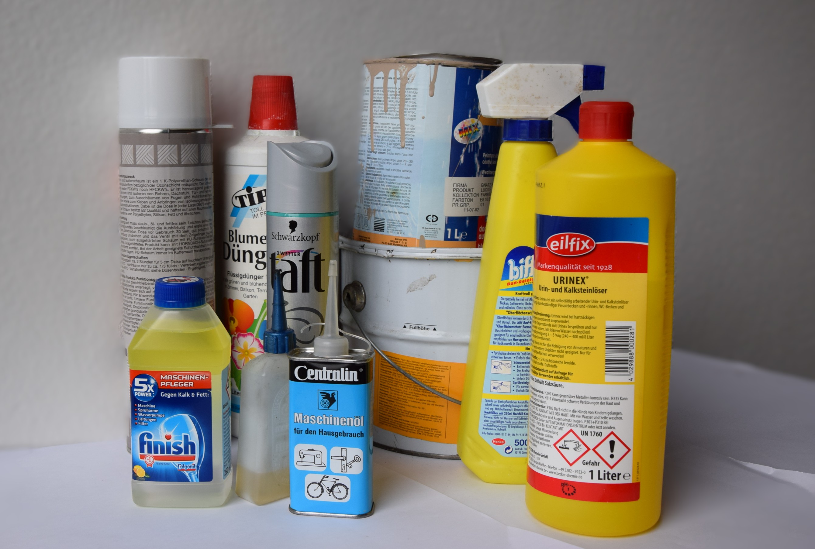Beispiele für gefährliche Abfälle sind Reinigungsmittel (Putzmittel, Flecklöser, Pinselreiniger, Desinfektionsmittel), Farben und Lacke, Lösungsmittel und Spezialflüssigkeiten (Terpentin, Kühlflüssigkeit, Abbeizmittel), Pflegemittel für Möbel oder Kfz- Polituren, Spraydosen mit Füllresten, Spritzmittel (Schädlingsbekämpfungsmittel, Unkrautvernichtungsmittel), Kosmetikartikel (Nagellack, Nagellackentferner), Klebstoffe, Batterien (Knopfzellen, Akkus; Annahme von Haushaltsbatterien an allen Wertstoffhöfen) und Mineralöle (Benzin, Heizöl).