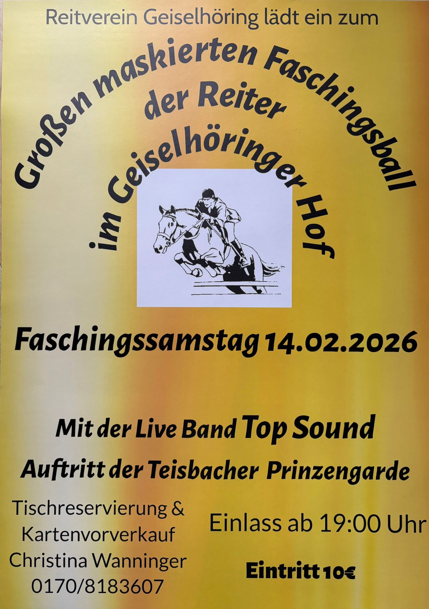 => Im Geiselhöringer Hof mit Liveband Top Sound und Auftritt der Teisbacher Prinzengarde.